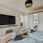 Ferienhaus Skipper comes with a bathroom with a separate toilet, a shower, and a washing machine. There are hair dryers for guests' comfort.